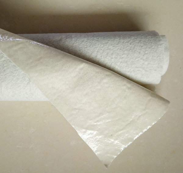 復(fù)合土工布:一布一膜施工中,首先要用料徑較小的砂土或粘土找平基面,然后再鋪設(shè)土工膜。土工膜不要繃得太緊,兩端埋入土體部分呈波紋狀,最后在所鋪的土工膜上用細(xì)砂或粘土鋪一層10cm左右過渡層。砌上20-30cm塊石(或砼預(yù)制塊)作防沖保護(hù)層。施工時,應(yīng)盡力避免石塊直接砸在土工膜上,最好是邊鋪膜邊進(jìn)行保護(hù)層的施工。復(fù)合土工膜與周邊結(jié)構(gòu)物連接應(yīng)采用膨脹螺栓和鋼板壓條錨固,連接部位要涂刷乳化瀝青(厚2mm)粘接,以防該處發(fā)生滲漏。